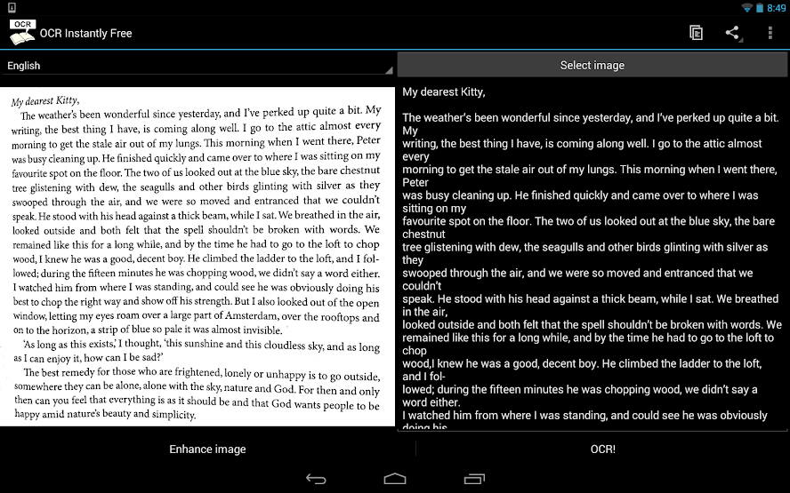 5) Digitized text can be copied to clipboard, shared with other apps directly, or saved to SD card as .txt file (saving is available in Pro version only).