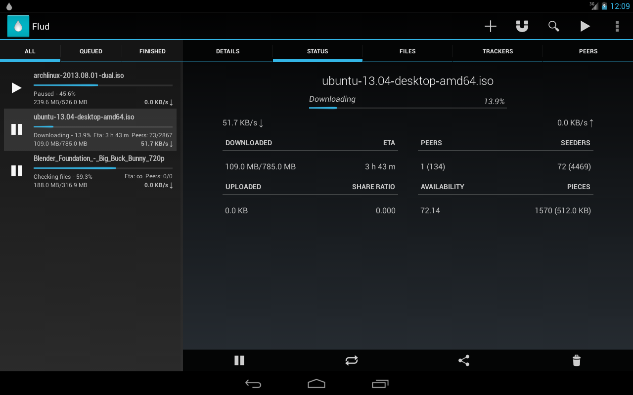 : Flud is a simple and beautiful BitTorrent client for android. The power of BitTorrent protocol is now in the