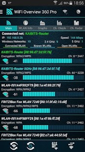WiFi Overview 360 Pro is not only a WLAN Scanner, which shows all WLANs in range, the app is much more.