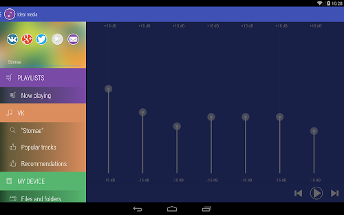 Playing the folder structure, artist or album or create your own playlists with local or online tracks.