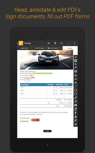 It allows you to mark up documents with highlights and handwriting, insert text and stamps, sign and even manipulate PDF pages. Ultimately, PDF Max 4 is the premium choice for filling out PDF forms right on your Android. Moreover, the advanced zoom-in handwriting feature is an unmatched tool to help you fill non-interactive forms or take notes like never before. With PDF Max 4 - There is no substitute!