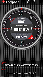Not the usual compass! Professional look, magnetic and true heading, magnetic declination, measurement of angles, gps coordinates and location