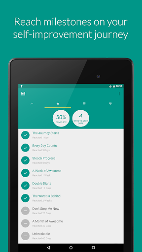 ✔ Reach Milestones: embark on a self-improvememt journey. Stay on course by reaching milestones and unlocking achievements.